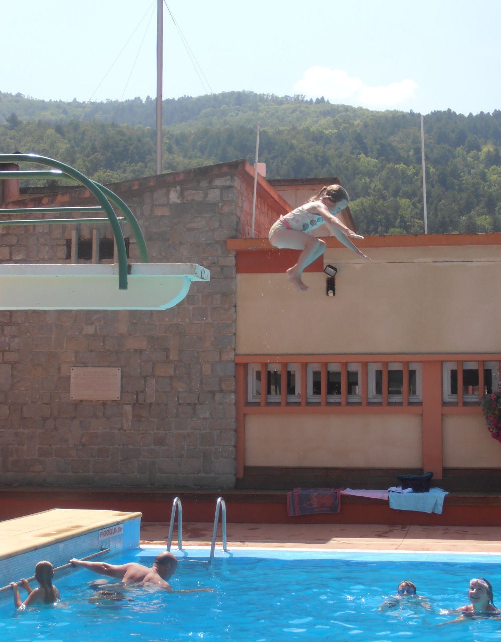 His question made me realise that it is probably years since I have jumped in. My regular swimming pool has a deep end, this is sadly quite rare these days. Modern pools are often all one depth. It is cheaper that way as there is less water to heat. I have a very good friend who campaigned not only to keep our local pool open, but also to keep the depth. The management wanted to fill it in and make it more shallow but she fought to keep the three metre depth at one end. She won, so we have the luxury of the deep water to swim in. The diving boards were taken away, so there is nowhere to practice diving anymore, but at least we can jump in. So why were we denying ourselves that pleasure? Foolish of us.